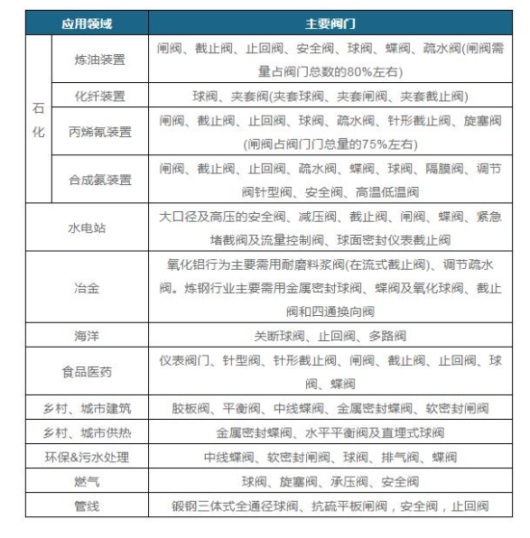十大應(yīng)用領(lǐng)域及主要應(yīng)用閥門